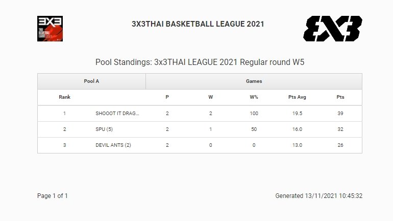 ทีมหญิง บาสเกตบอลสามคนอาชีพ 3x3 Thai Basketball League 2021 จบสนาม 5 ทาง https://fiba3x3.com/ สรุปตารางผลการแข่งขัน Regular round 5 เมื่อวันที่ 13 พ.ย.64 หลังจบนัดชิงฯ Shoot It Dragons ชนะ ม.ศรีปทุม 11-10