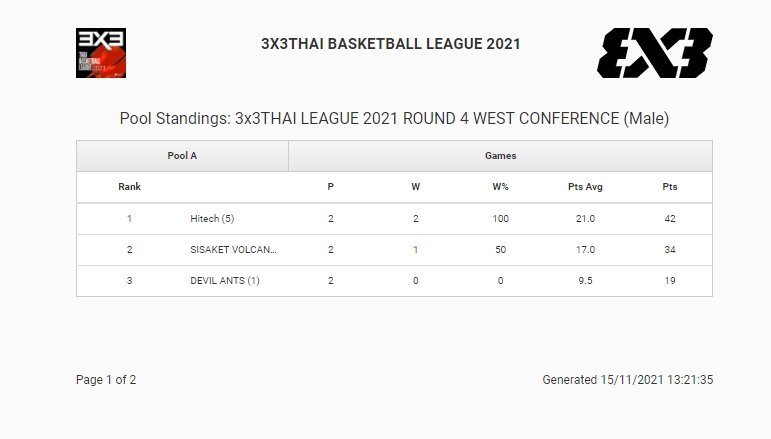 ไฮเทค ไททัน รั้งอันดับ 1 ตาราง FIBA 3x3 ฝั่ง WEST