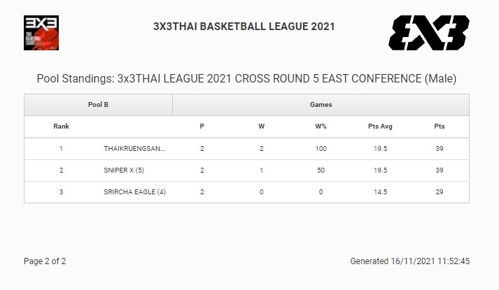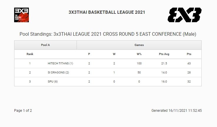 ไฮเทค ไททัน รั้งอันดับ 1 ตาราง FIBA 3x3 EAST